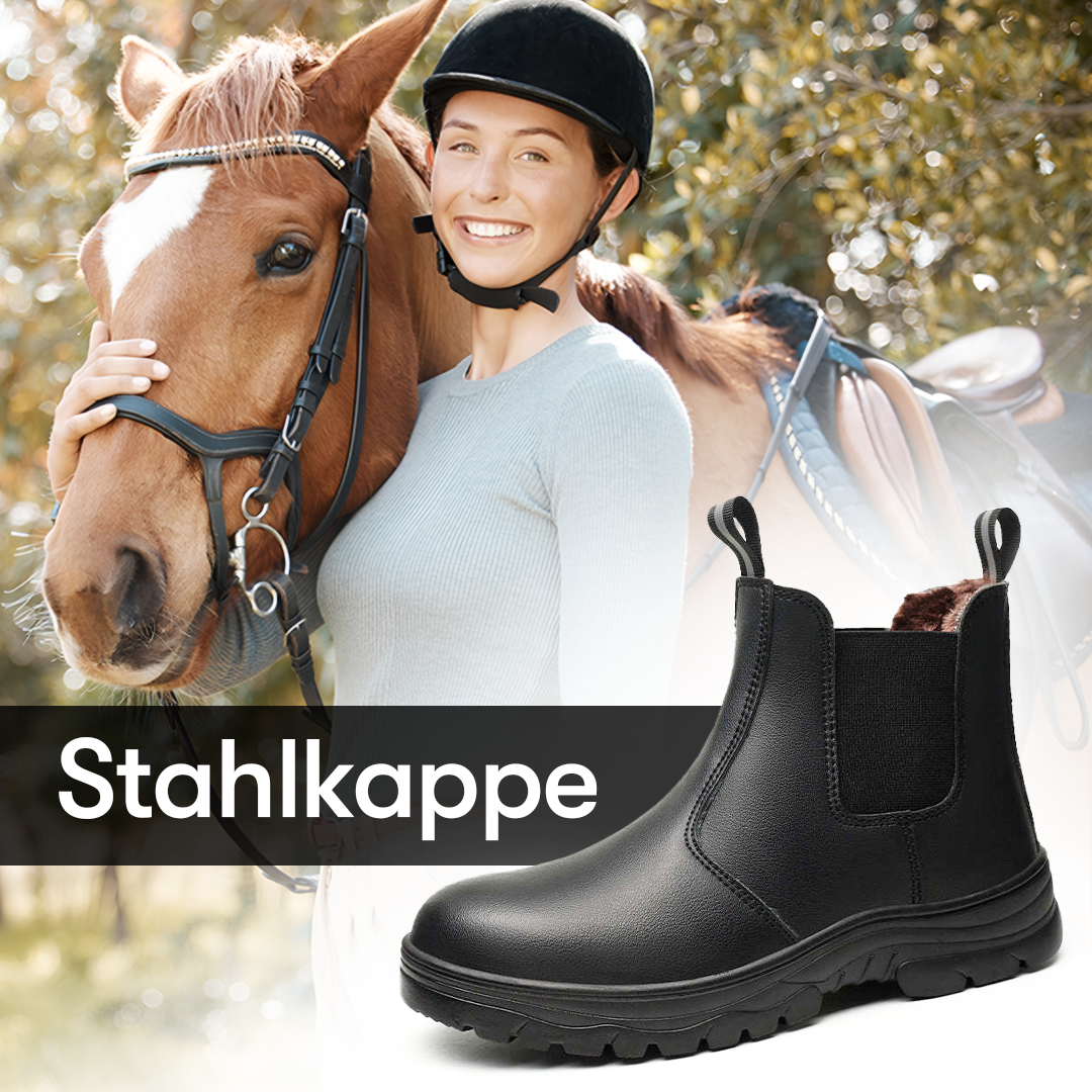 Unsere Sicherheitsschuhe für den Pferdesport sind mit einer Vielzahl von Merkmalen ausgestattet, um maximalen Schutz im Stall zu gewährleisten: