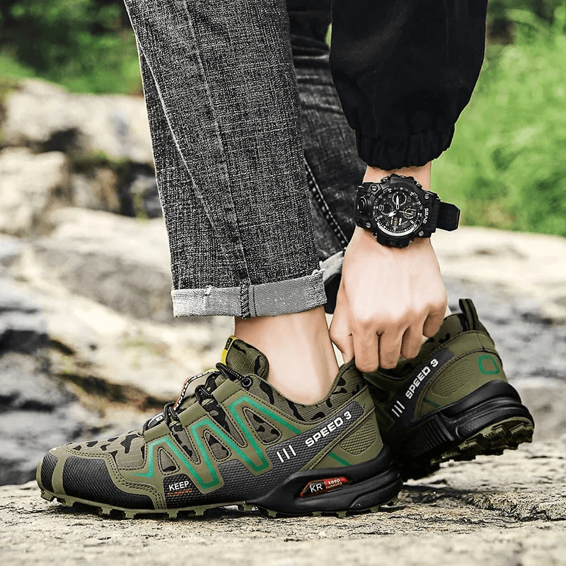 Das Obermaterial des Niro Orthopädischer Lauf- und Wanderschuhs ist aus atmungsaktivem Mesh und strapazierfähigem Leder gefertigt. Dies sorgt nicht nur für eine hervorragende Belüftung, sondern macht den Schuh auch langlebig und widerstandsfähig gegenüber unterschiedlichen Wetterbedingungen. Perfekt für Outdoor-Abenteuer und tägliche Aktivitäten.